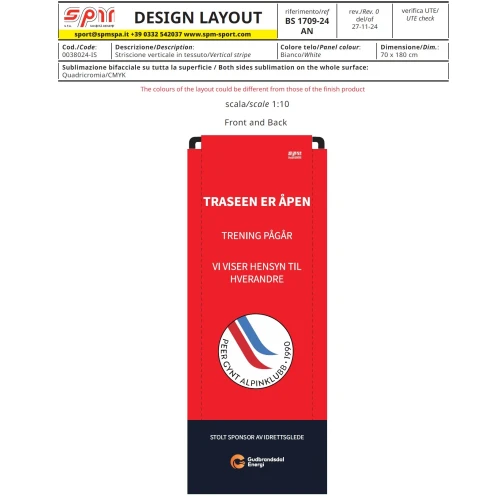 Banner med ramme på 180 cm høyt og 70 cm bredt. Benyttes til start/mål, informasjon, reklame, avarsel eller det du måtte ønske.